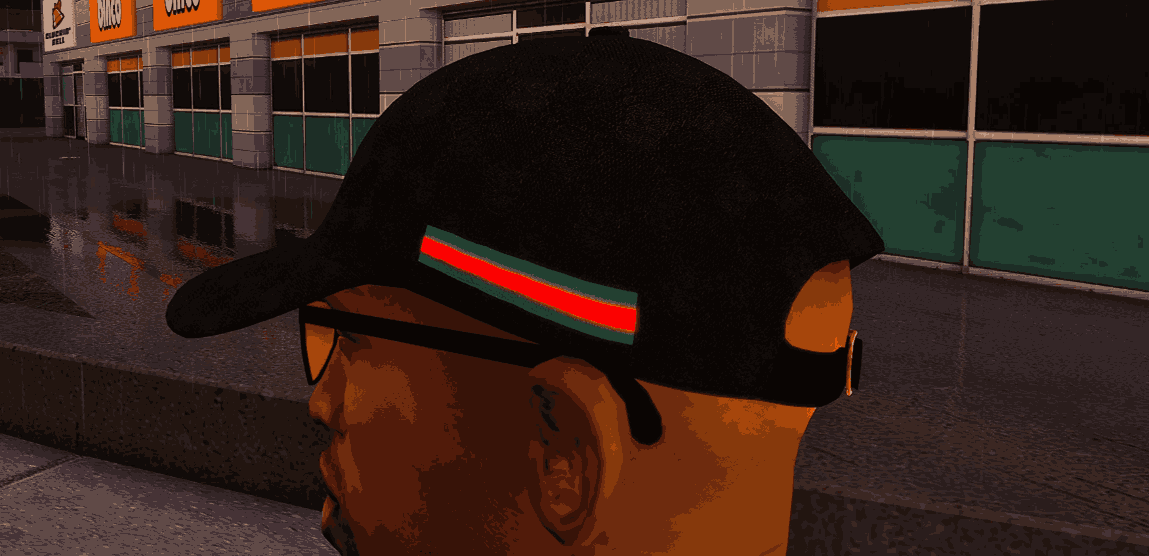 Add some streetwear luxury to CJ’s wardrobe with the Realistic Gucci Cap Black mod.