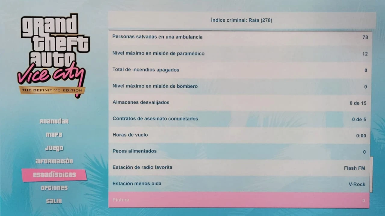 Vice City Paramedic Missions Completed – Infinite Stamina (Misiones de Paramédico Completadas Sin Cansancio), Start your adventure in Vice City with a perfect early boost.